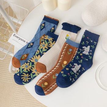 Yeni kadın Vintage edebi pamuk orta tüp çorap için bahar/yaz nefes günlük kullanım ekip uzunluğu vücut manşet kadınlar kızlar için